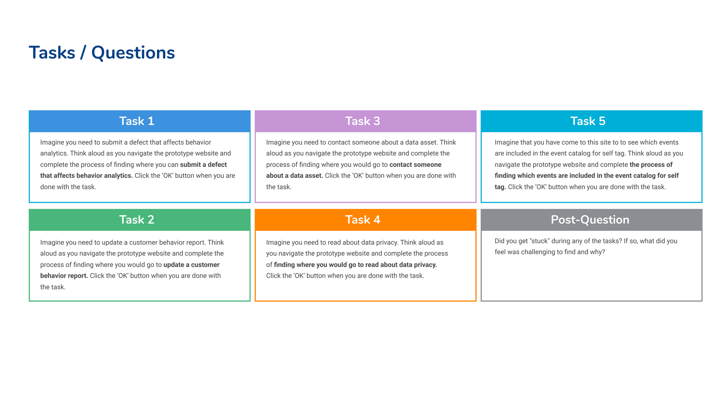 Users shared the screen when completing the tasks and were asked to talk out loud about the things that were beneficial or challenging