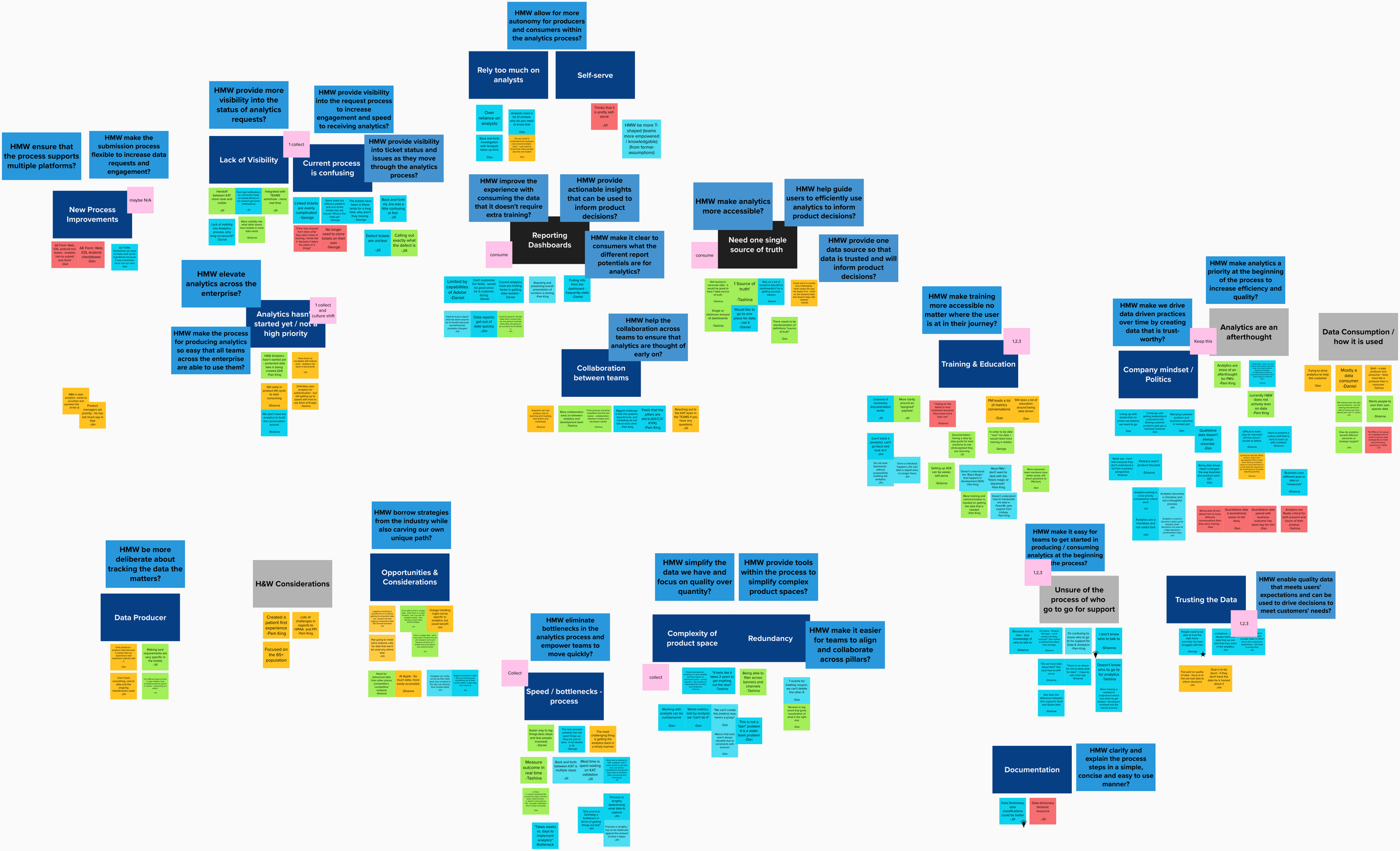 Affinity mapping session to analyze results, write ‘How Might We’ questions and uncover themes