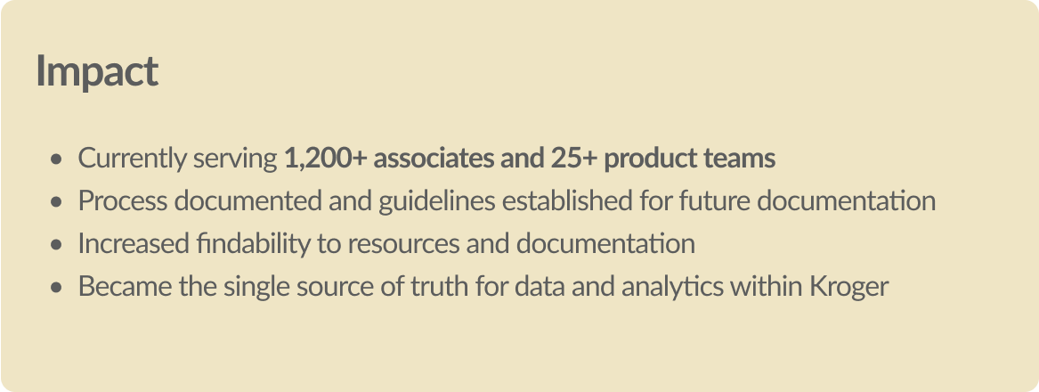 MVP needed to give product teams access to information quickly. Further improvements and iterations were made after MVP